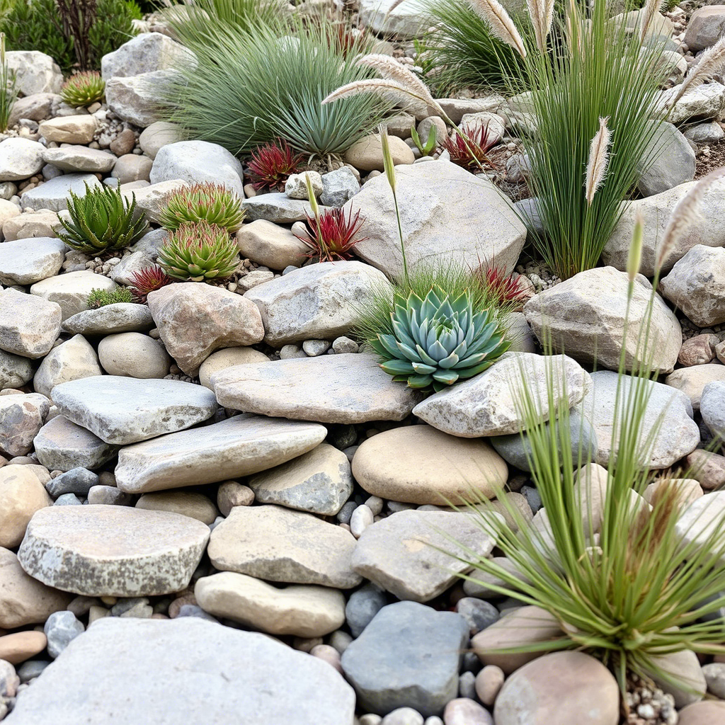 Créez un paysage minéral moderne en combinant des roches de différentes tailles avec des plantes succulentes et des graminées. Utilisez des pierres locales disposées de manière artistique pour créer des niveaux et des perspectives. Ce style nécessite peu d’entretien et apporte une dimension sculpturale à votre entrée.