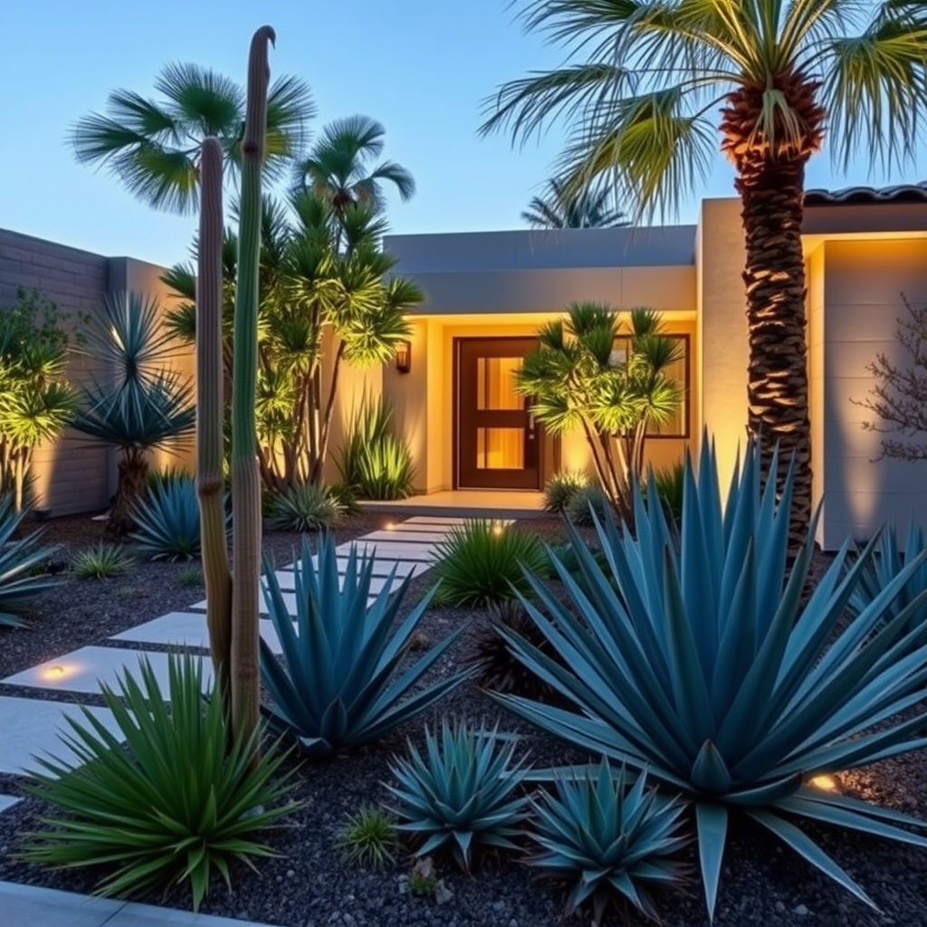 Misez sur des végétaux à port remarquable comme les yuccas, agaves, palmiers résistants au froid ou bambous non-traçants. Ces plantes créent des points focaux impressionnants et apportent une dimension exotique à votre entrée. Associez-les à des plantes plus classiques pour créer du contraste.