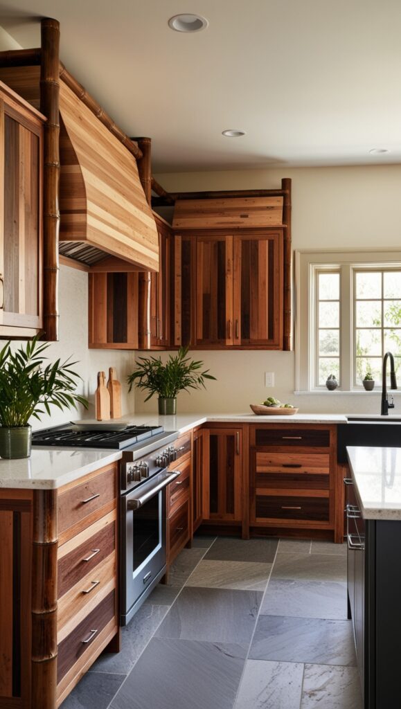 Le bois recyclé, le bambou et le quartz renouvelable dominent les cuisines haut de gamme. Ces matériaux allient durabilité et esthétique, apportant une touche naturelle et chaleureuse .