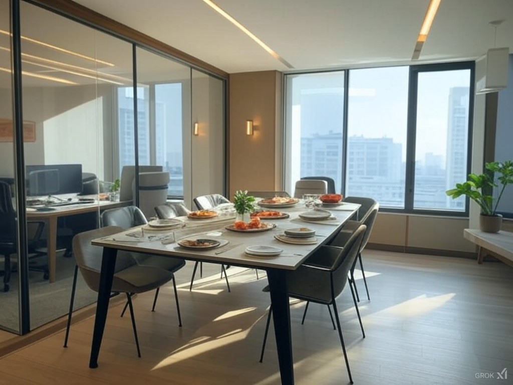 La cuisine fusionne avec le salon ou le bureau, favorisant les échanges. Des cloisons mobiles ou des zones de transition fluidifient l’espace .