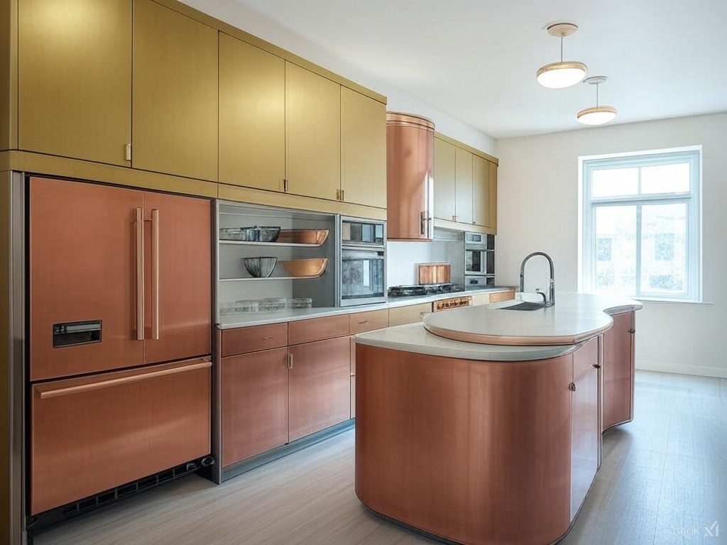 Or rose, cuivre vieilli ou acier brossé : les détails métalliques subliment les placards et les accessoires, apportant une touche industrielle chic .