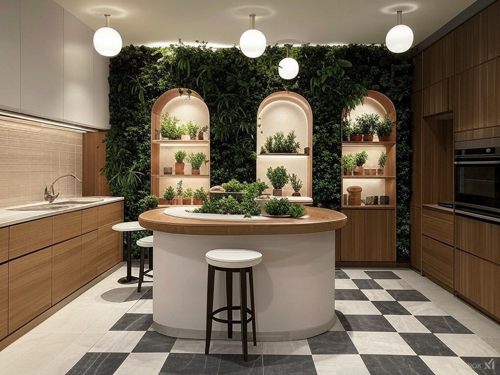 Plantes aromatiques intégrées, murs végétaux ou potagers d’intérieur : la nature s’invite dans l’espace culinaire pour un air purifié et esthétique .